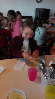 Om 12 uur krijgen we een heerlijke maaltijd . Spagetti !!!!!!!!! Hmmmmm
